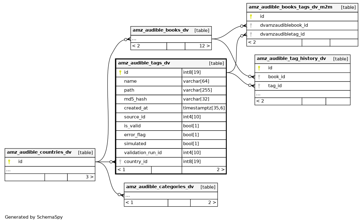 | amz_audible_tags_dv_pkey | Primary key | Asc | id |
