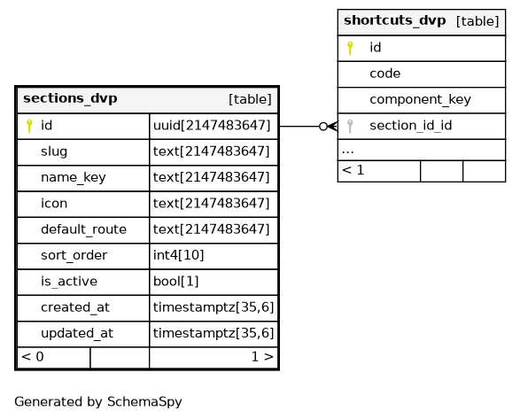 | sections_dvp_pkey | Primary key | Asc | id |