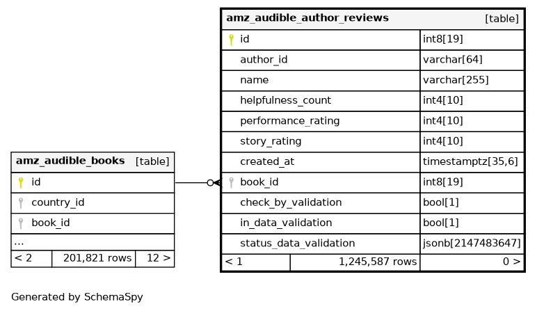 | amz_audible_author_reviews_pkey | Primary key | Asc | id |
