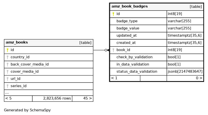 | amz_book_badges_pkey | Primary key | Asc | id |