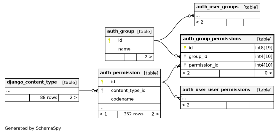 | auth_group_permissions_group_id_permission_id_0cd325b0_uniq | Must be unique | Asc/Asc | group_id + permission_id |